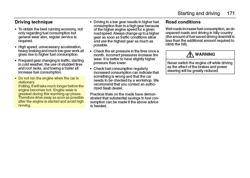 Many vehicle owners' manuals have specific instruction on idling requirements along with recommendations and warnings to avoid excessive idling for reasons of fuel economy, severe duty that results in engine wear and oil breakdown, when the vehicle is unattended, and most importantly - the danger of idling in enclosed spaces or when ventilation is not adequate, as deadly carbon monoxide poisoning can occur.